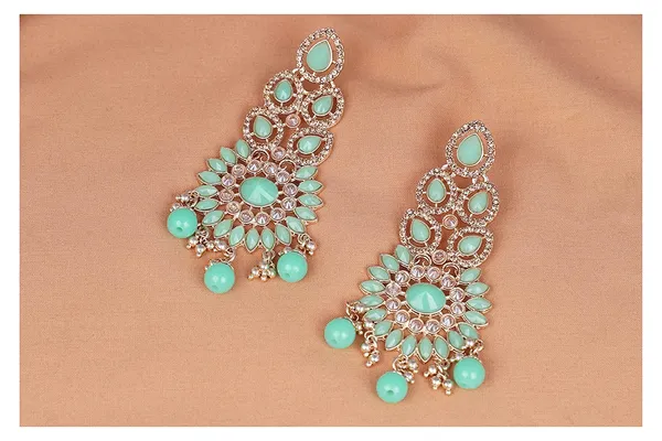 Light Green Gold T1 Floral And Polki St1 Fancy Bead Drop Earring