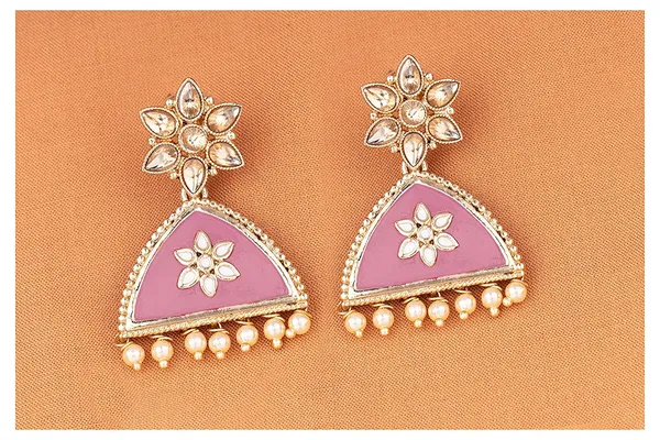 JFL - Jewellery for Less Gold Tone Triangle Shape Meenakari Painted Cz LCD Stone Studded with Drop Pearl Dangler Earrings Women love jewellery specially Fashions jewellery adore a women You can wear this Earrings on all occasion This beautiful piece of jewellery will enhance your beauty and compliment you Make your moment memorable with this high quality fashion earrings This earrings women’s wear on like ring ceremony, wedding and any traditional festive time, daily wear,office wear This pretty earring pair makes your look impressive for any occasion It will make your moment memorable with this range This designed Earrings will go well matching With Any Attire Like dress,saree This set will definitely be a treasured inclusion in every woman's jewellery collection new range of fashion earrings - Designer, Classy, Charming, Elegant, Appealing, Affordable, Casual as well as party wear, Pocket-friendly, Superb quality, High quality plating, Skin friendly, Non-allergic, Attractive, Mesmerising, etc