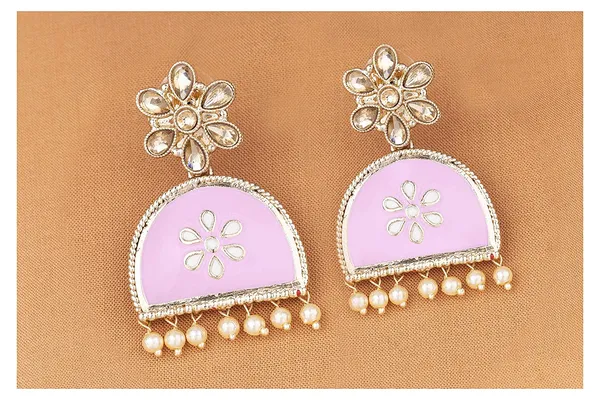 JFL - Jewellery for Less Gold Tone Semi Circle Meenakari Painted Cz LCD Stone Studded with Drop Pearl Dangler Earrings Women love jewellery specially Fashions jewellery adore a women You can wear this Earrings on all occasion This beautiful piece of jewellery will enhance your beauty and compliment you Make your moment memorable with this high quality fashion earrings This earrings women’s wear on like ring ceremony, wedding and any traditional festive time, daily wear,office wear This pretty earring pair makes your look impressive for any occasion It will make your moment memorable with this range This designed Earrings will go well matching With Any Attire Like dress,saree This set will definitely be a treasured inclusion in every woman's jewellery collection new range of fashion earrings - Designer, Classy, Charming, Elegant, Appealing, Affordable, Casual as well as party wear, Pocket-friendly, Superb quality, High quality plating, Skin friendly, Non-allergic, Attractive, Mesmerising, etc