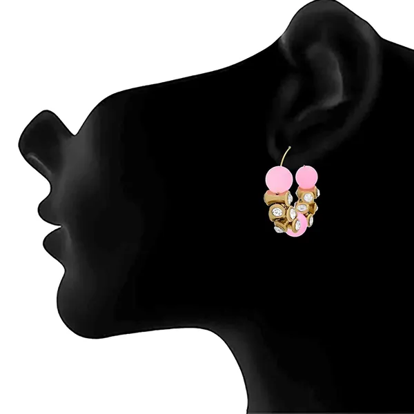 Light Pink 1 Gm Gold Plated Bead Diamond Earrings