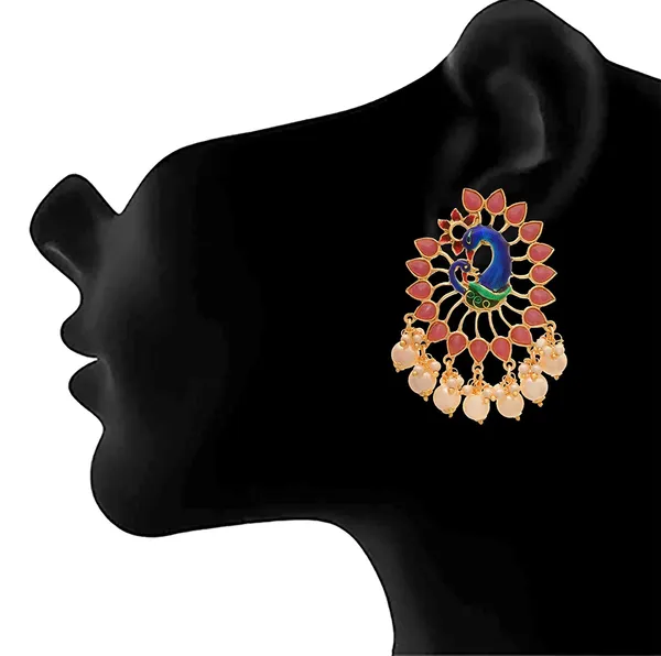 Light Pink 1 Gm Gold Plated Meenakari Peacock Light Polki Diamond & Pearls ..More