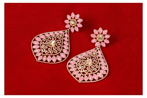 Light Pink Gold Plated Flower Shape Dangle And Drop Earrings
