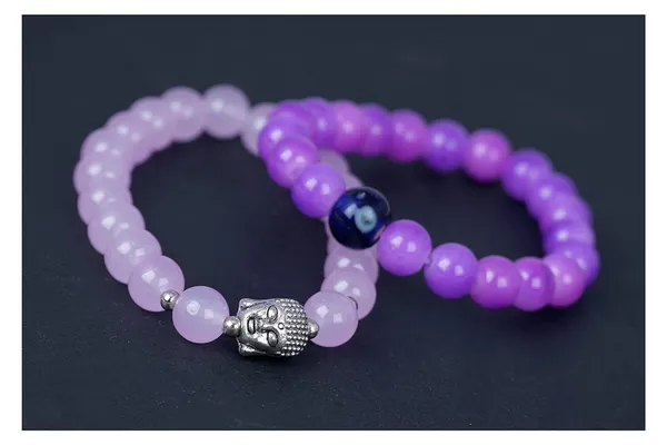 Light Purple Onyx Beads Evil Eye And Buddha Bead Handmade Spiritual Energy ..More