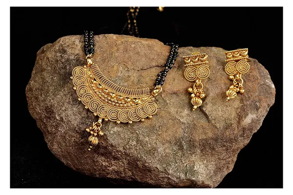 Mangalsutra | Gold Plated Spiral Design Mangalsutra Jewellery Set With Earr..More