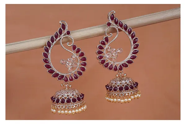 Maroon Gold T1 Polki St1 Studded Pearl Drop Jhumkas Earrings