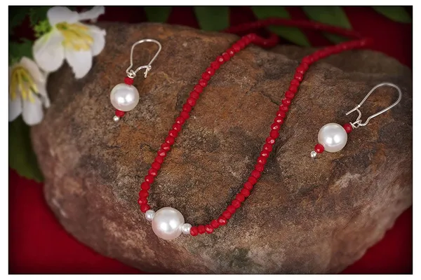 Maroon Modern Fusion Mangalsutra With Pearl & Onyx Crystal Chain And Earrin..More