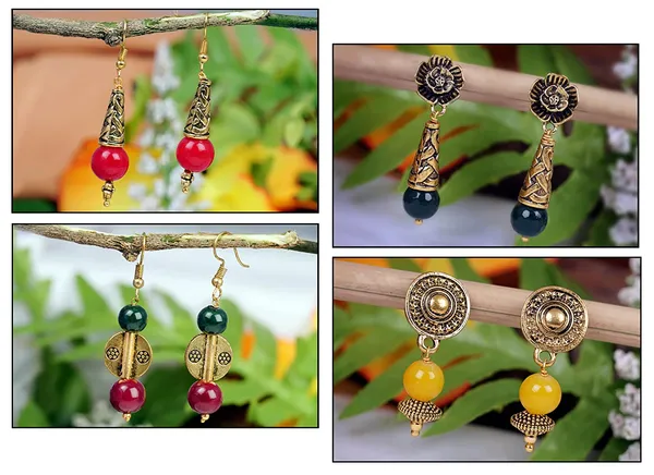 Maroon,Yellow,Green,Red Oxidised Gold Plated Handmade Beaded Multi Dangler ..More
