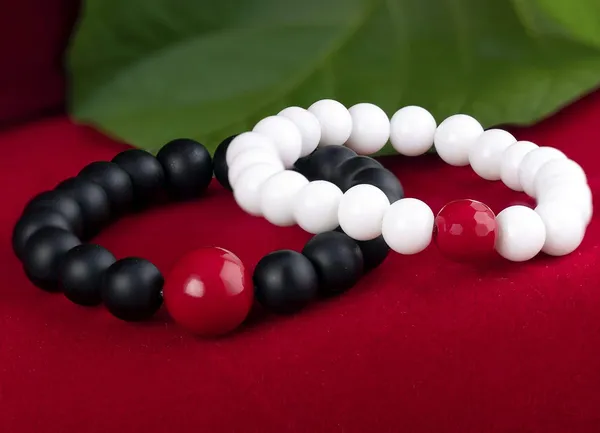Matte Black And White Onyx Stone With Red Bead Handmade Stretchable Bracele..More