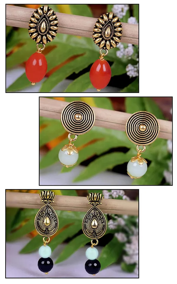Mint, Black, Orange Contemporary Oxidised Gold Plated Handmade Beaded Dangl..More