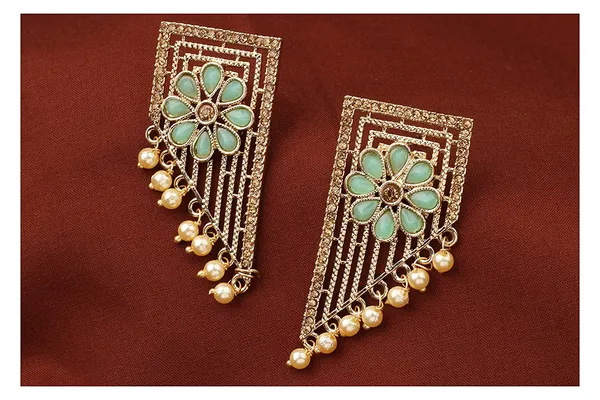 Mint Green Gold T1 Half Floral Stud Earrings & Woman