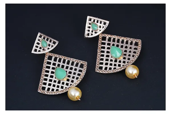Mint Green Gold T1 Triangle Design Jali Work And Polki St1 Studded Pearl Dr..More