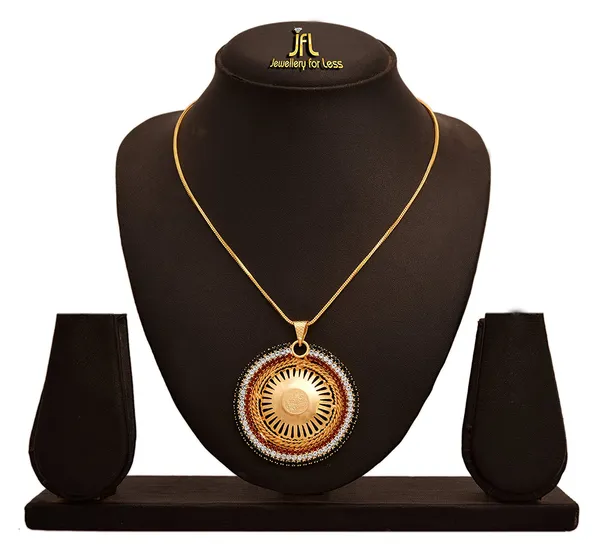 Multi Colour 1 Gm Gold Plated Goddess Laxmi Pendant With White Austrian Dia..More