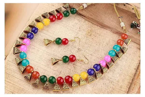 Multicolor Gold Plated German Oxidized And Onyx Beaded Combo Of 2 Fancy Nec..More