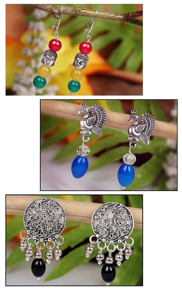 Multicolor Oxidised Silver Plated Handmade Beaded Dangler Earring