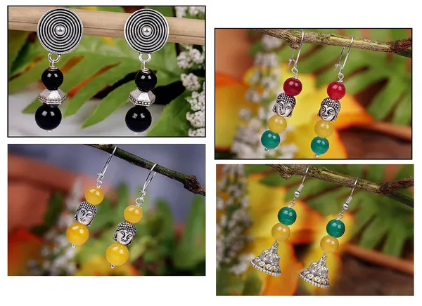 Multicolor Oxidised Silver Plated Handmade Beaded Multi Dangler Earring
