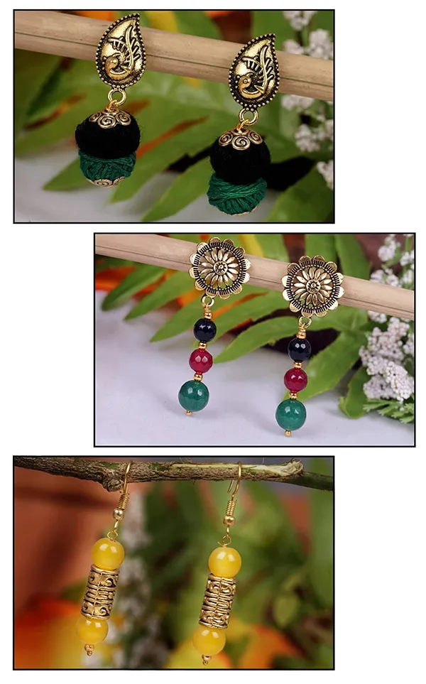 Multicolor Trendy Floral Oxidised Gold Plated Handmade Cotton Beaded Dangle..More