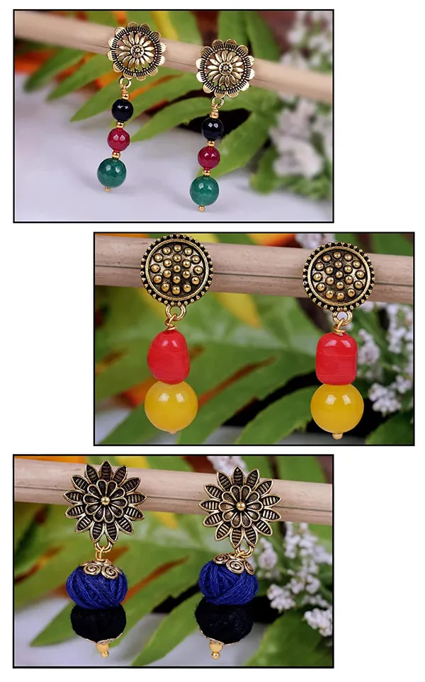 Multicolor Trendy Floral Oxidised Gold Plated Handmade Cotton Beaded Dangle..More