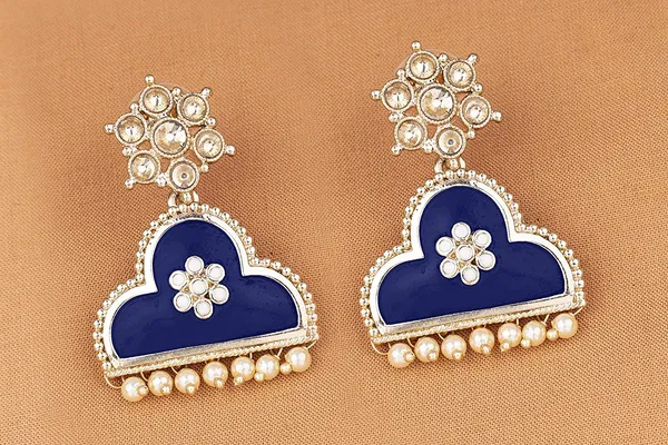 JFL - Jewellery for Less Gold Tone Floral Scallop Shape Meenakari Painted Cz LCD Stone Studded with Drop Pearl Dangler Earring Women love jewellery specially Fashions jewellery adore a women You can wear this Earrings on all occasion This beautiful piece of jewellery will enhance your beauty and compliment you Make your moment memorable with this high quality fashion earrings This earrings women’s wear on like ring ceremony, wedding and any traditional festive time, daily wear,office wear This pretty earring pair makes your look impressive for any occasion It will make your moment memorable with this range This designed Earrings will go well matching With Any Attire Like dress,saree This set will definitely be a treasured inclusion in every woman's jewellery collection new range of fashion earrings - Designer, Classy, Charming, Elegant, Appealing, Affordable, Casual as well as party wear, Pocket-friendly, Superb quality, High quality plating, Skin friendly, Non-allergic, Attractive, Mesmerising, etc