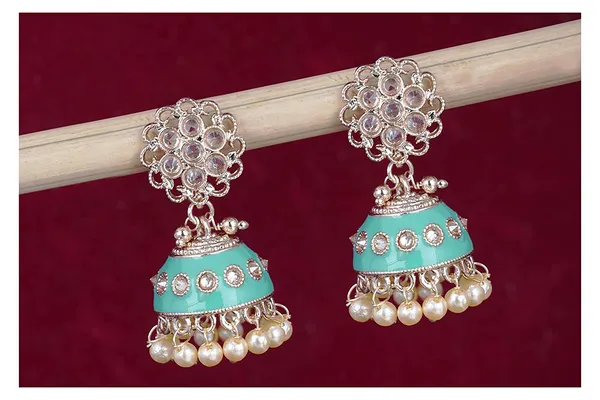 Navy Blue Jewellery Pearl Enamel Meenakari Hand Painted Jhumka Earrings