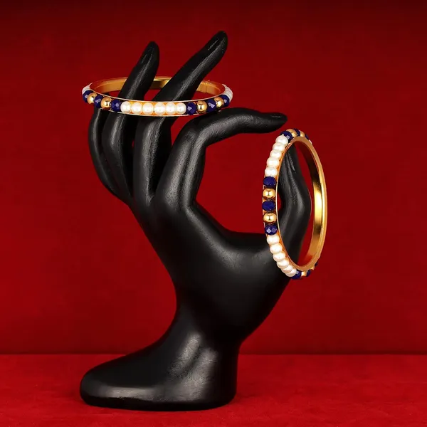 One Gram Gold Plated Designer Pearl Bangles With Crystal & Gold Beads Handc..More