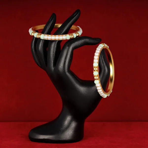 One Gram Gold Plated Designer Pearl Bangles With Crystal & Gold Beads Handc..More
