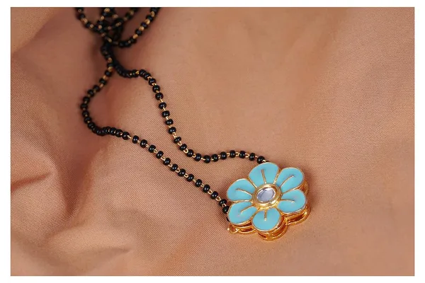 One Gram Gold Plated Kundan Meenakari Floral Pendant Mangalsutra With Kunda..More