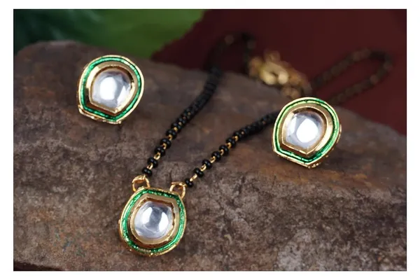 One Gram Gold Plated Kundan Pendant Mangalsutra With Kundan Stud Earring Fo..More