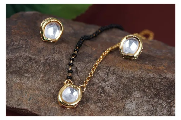 One Gram Gold Plated Kundan Pendant One Side Chain Mangalsutra With Kundan ..More