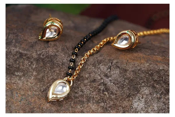 One Gram Gold Plated Mango Shape Kundan Pendant One Side Chain Mangalsutra ..More