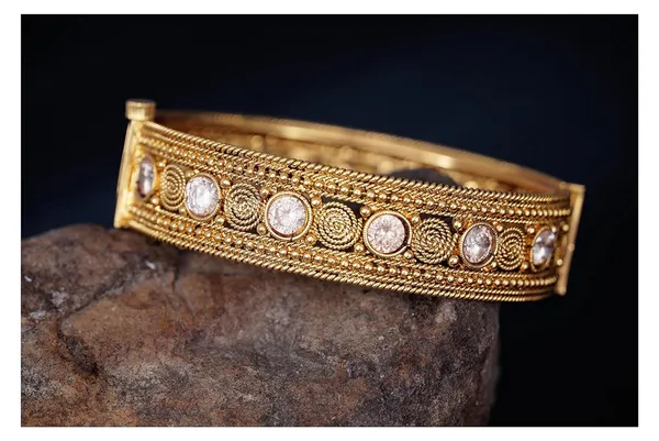 One Gram Gold Plated Polki Stone Studded Spiral Designer Openable Kada For ..More