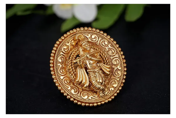 One Gram Micro Gold Plated Ethnic Antique Traditional Round Lord Krishna Ad..More
