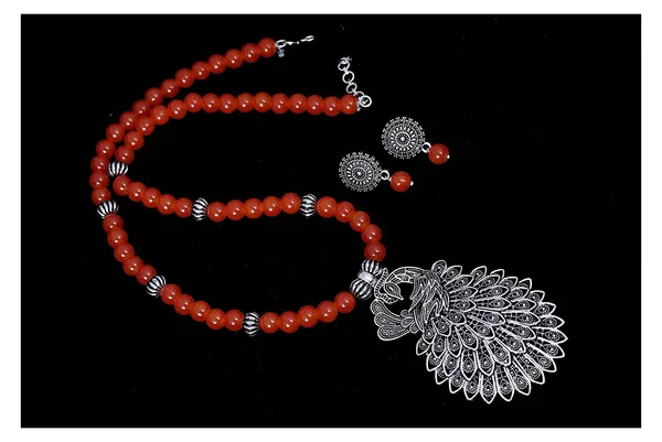 Orange Beaded Peacock Collection Onyx St1 Necklace Set