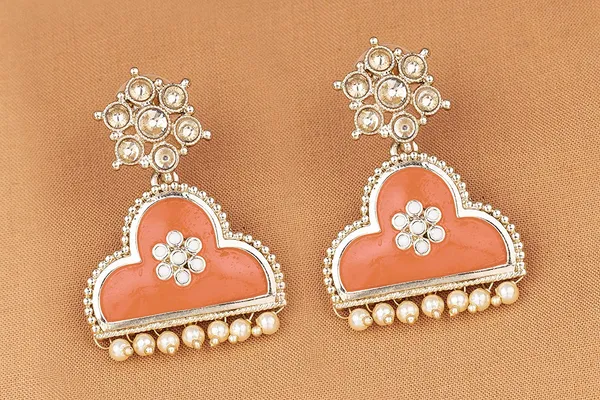JFL - Jewellery for Less Gold Tone Floral Scallop Shape Meenakari Painted Cz LCD Stone Studded with Drop Pearl Dangler Earring Women love jewellery specially Fashions jewellery adore a women You can wear this Earrings on all occasion This beautiful piece of jewellery will enhance your beauty and compliment you Make your moment memorable with this high quality fashion earrings This earrings women’s wear on like ring ceremony, wedding and any traditional festive time, daily wear,office wear This pretty earring pair makes your look impressive for any occasion It will make your moment memorable with this range This designed Earrings will go well matching With Any Attire Like dress,saree This set will definitely be a treasured inclusion in every woman's jewellery collection new range of fashion earrings - Designer, Classy, Charming, Elegant, Appealing, Affordable, Casual as well as party wear, Pocket-friendly, Superb quality, High quality plating, Skin friendly, Non-allergic, Attractive, Mesmerising, etc