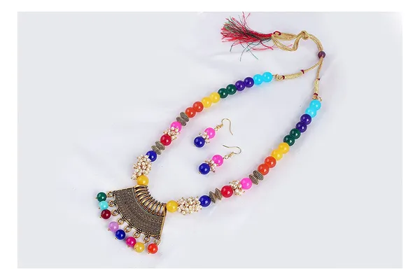 Oxidise Gold Plated Pendant Onyx Bead Pearl Necklace And Earring