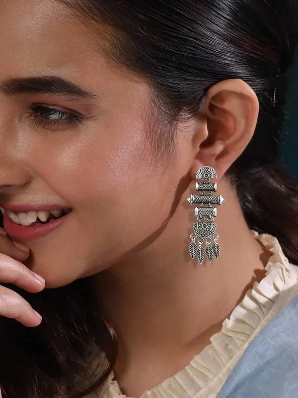 Oxidized German Silver Trendy Fusion Oxidised German Silver Plated Earrings..More