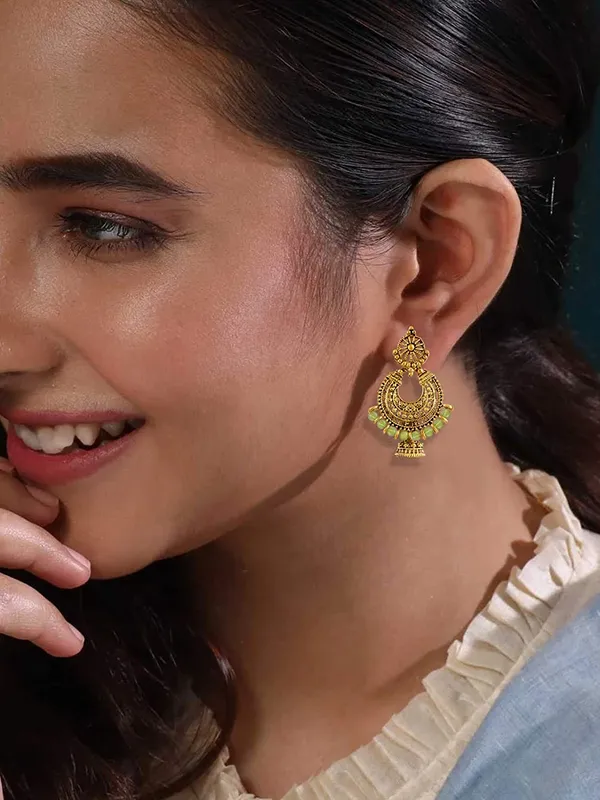 Parrot Green Trendy Fusion Oxidised Gold Plated Earrings Party Casual Wear