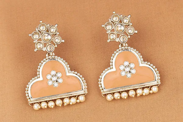 JFL - Jewellery for Less Gold Tone Floral Scallop Shape Meenakari Painted Cz LCD Stone Studded with Drop Pearl Dangler Earring Women love jewellery specially Fashions jewellery adore a women You can wear this Earrings on all occasion This beautiful piece of jewellery will enhance your beauty and compliment you Make your moment memorable with this high quality fashion earrings This earrings women’s wear on like ring ceremony, wedding and any traditional festive time, daily wear,office wear This pretty earring pair makes your look impressive for any occasion It will make your moment memorable with this range This designed Earrings will go well matching With Any Attire Like dress,saree This set will definitely be a treasured inclusion in every woman's jewellery collection new range of fashion earrings - Designer, Classy, Charming, Elegant, Appealing, Affordable, Casual as well as party wear, Pocket-friendly, Superb quality, High quality plating, Skin friendly, Non-allergic, Attractive, Mesmerising, etc