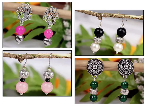 Pink, Baby Pink, Green, White Oxidised Silver Plated Handmade Beaded Dangle..More