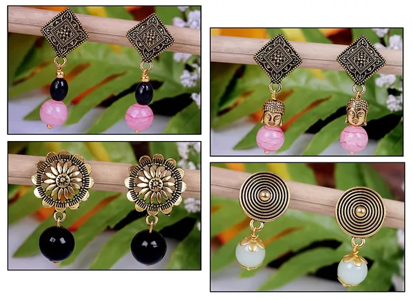 Pink, Black, Baby Pink, Mint Green Trendy Oxidised German Gold Plated Handm..More