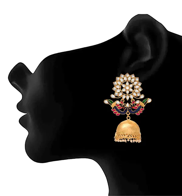 JFL - Traditional Ethnic One Gram Gold Plated Meenakari Kundan & Pearl Designer Earring & Girls
