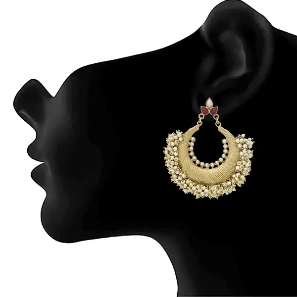JFL - Traditional Ethnic One Gram Gold Plated Pearl Designer Bali Earring