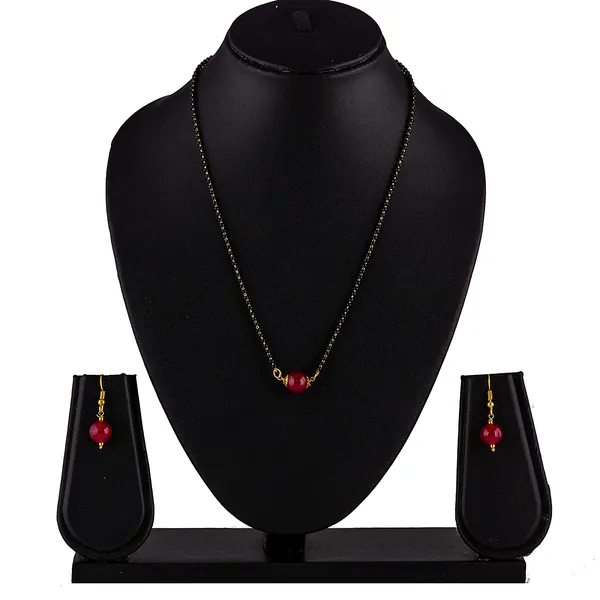 JFL - Jewellery for Less 1g Gold Plated Dark Pink Onyx Stone Designer Mangalsutra with Earrings & Black Beaded Chain