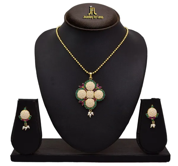 Pink And Green Cz American Diamonds Gold Plated Pendant Set For Women Valen..More