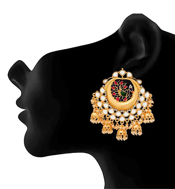 JFL - Traditional Ethnic One Gram Gold Plated Kundan & Pearl Meenakari Peacock Designer Earring & Girls
