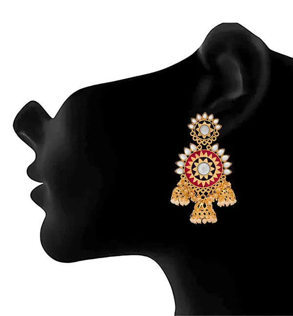 JFL - Traditional Ethnic One Gram Gold Plated Meenakari Kundan & Pearl Designer Earring & Girls