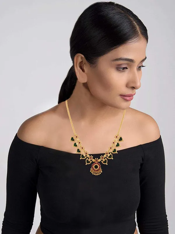 Pink Gold Plated Five Leaf Shaped With Austrian Diamond Floral Design Neckl..More