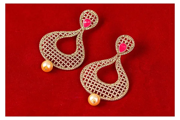 JFL - Jewellery for Less Gold Plated Jali Pattern Stone and LCD Diamond Studded Dangler Earrings Women love jewellery specially Fashions jewellery adore a women You can wear this Earrings on all occasion This beautiful piece of jewellery will enhance your beauty and compliment you Make your moment memorable with this high quality fashion earrings This earrings women’s wear on like ring ceremony, wedding and any traditional festive time, daily wear,office wear This pretty earring pair makes your look impressive for any occasion It will make your moment memorable with this range This designed Earrings will go well matching With Any Attire Like dress,saree This Earrings will definitely be a treasured inclusion in every woman's jewellery collection new range of fashion earrings - Designer, Classy, Charming, Elegant, Appealing, Affordable, Casual as well as party wear, Pocket-friendly, Superb quality, High quality plating, Skin friendly, Non-allergic, Attractive, Mesmerising, etc