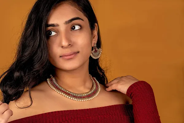 Pink Gold Plated Square St1 And Diamond Studded With Pearls Necklace Set Wi..More