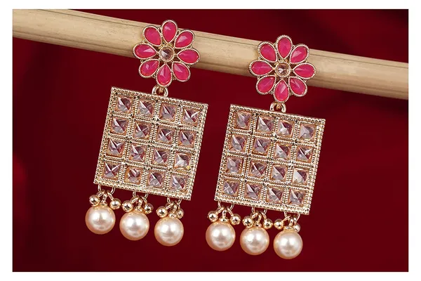 Pink Gold T1 Floral And Polki St1 With Drop Dangler Earring/Girls