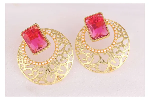 Pink Gold T1 Rectangle Crystal Stud Filigree Chandbali Earring With Small P..More